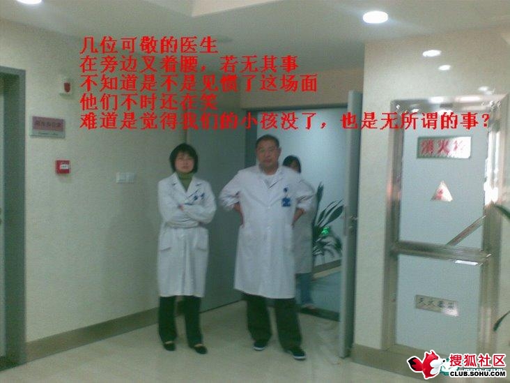 孩子就這么走了,能醫(yī)卻不醫(yī),只因?yàn)橐嬗螒?、要睡覺的醫(yī)生而耽誤了醫(yī)治時間,有誰不會去聲討他的無德?事到如今,只能說這位醫(yī)生不僅沒有醫(yī)德,也沒有道德,更可悲的是他連起碼的人格都沒有。當(dāng)然,喪盡天良的不光是那位推卸自己不是眼科而是五官科的值班醫(yī)生,最重要的是也包括那些南京市兒童醫(yī)院行政樓里的醫(yī)院院長、醫(yī)生、保安、護(hù)衛(wèi),甚至也包括駐守在醫(yī)院門口的警務(wù)處民警們。