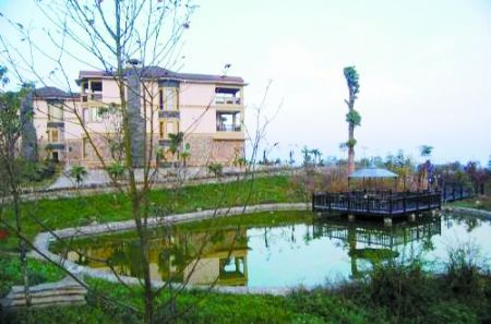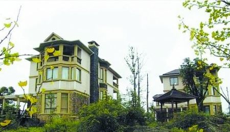 被媒體曝光的文強的“雙子別墅”位于仙女山鎮(zhèn)石梁子村黃家灣,占地近二十畝。兩棟雅黃色的西班牙殖民式別墅位于那片風景區(qū)制高點,都是三層樓,外觀一致,高高的煙囪顯示別墅里都有歐式壁爐,一樓外墻由深黃色的名貴石材造成,四周栽種了不少熱帶樹木;二樓和三樓都有超大露臺,正好可以在這個制高點用于遠望連綿起伏的遠山。別墅外建有人工小湖,湖邊的草坪有整潔的小徑可以散步,更有木質的親水回廊一直延伸到湖中央。整個別墅區(qū)被柵欄包圍,朝里望去,花木、涼亭、水榭一應俱全。