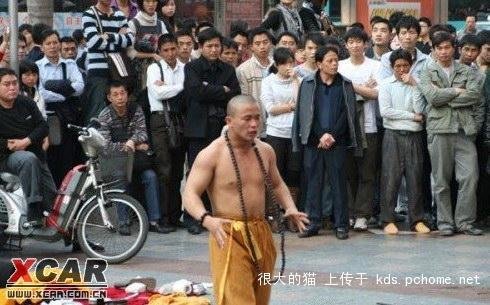 一個160左右的少林寺弟子,在深圳華強北賣藝,用酒瓶敲頭,林沖用的長槍插自己,開始有4個城管叫他走,他沒有理會,4個城管也在旁邊看,邊打電話,隨后和尚18般武藝都使出來了,后來來了一車城管,想直接去砸和尚的東西,開始4個城管就對他們說,他功夫厲害,30多個城管拿棒子準備打架的狀態(tài),城管說你走不走,和尚說這里是中國人的地方我就…